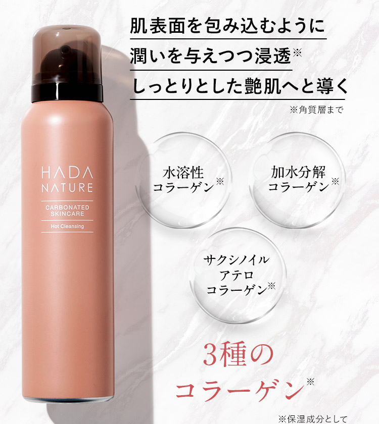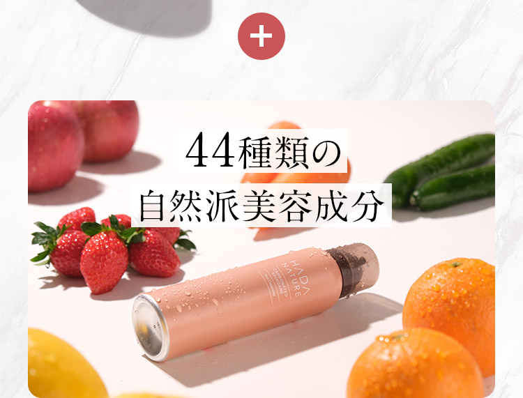 温泉水、セラミドEOP、セラミドNP、セラミドAP、コメヌカエキス、セイヨウミザクラ果実エキス、クダモノトケイソウ果実エキス、ウメ果実エキス、オクラ果実エキス、モモ葉エキス、ヨモギ葉エキス、チャ葉エキス、ショウガ根茎エキス、オレンジ果汁、レモン果汁、リンゴ果汁、モモ果汁、ヤエヤマアオキ果汁、アルガニアスピノサ核油、ヒマワリ種子油、フィトスフィンゴシン、コメ発酵液、加水分解コラーゲン、水溶性コラーゲン、サクシノイルアテロコラーゲン、グルコノバクター/ハチミツ発酵液、ヨーグルト液(牛乳)、加水分解ハトムギ種子、リンゴ果実エキス、マンダリンオレンジ果皮エキス、トマト果実エキス、キュウリ果実エキス、ソメイヨシノ葉エキス、シソ葉エキス、ヘチマエキス、ニンジン根エキス、ビワ葉エキス、リンゴ果実水、ウンシュウミカン果実水 、酒粕エキス、プラセンタエキス、アロエベラ葉エキス、クズ根エキス、クロレラエキス、テトラヘキシルデカン酸アスコルビル